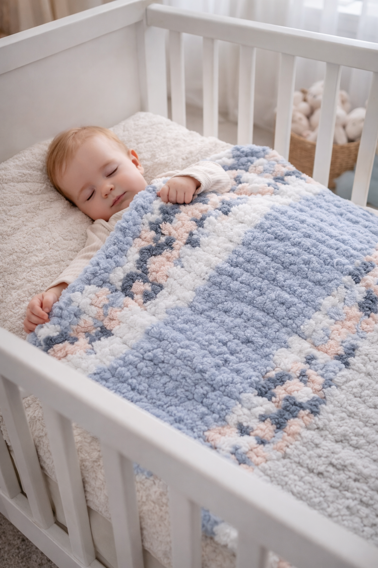Cloud-like softness for your little one. Gender neutral baby blanket measures 25 x 32. Hand crafted with the highest quality, soft chunky yarn. Perfect for swaddling, tummy time, or a cover during skin to skin contact to keep baby comfy and warm.